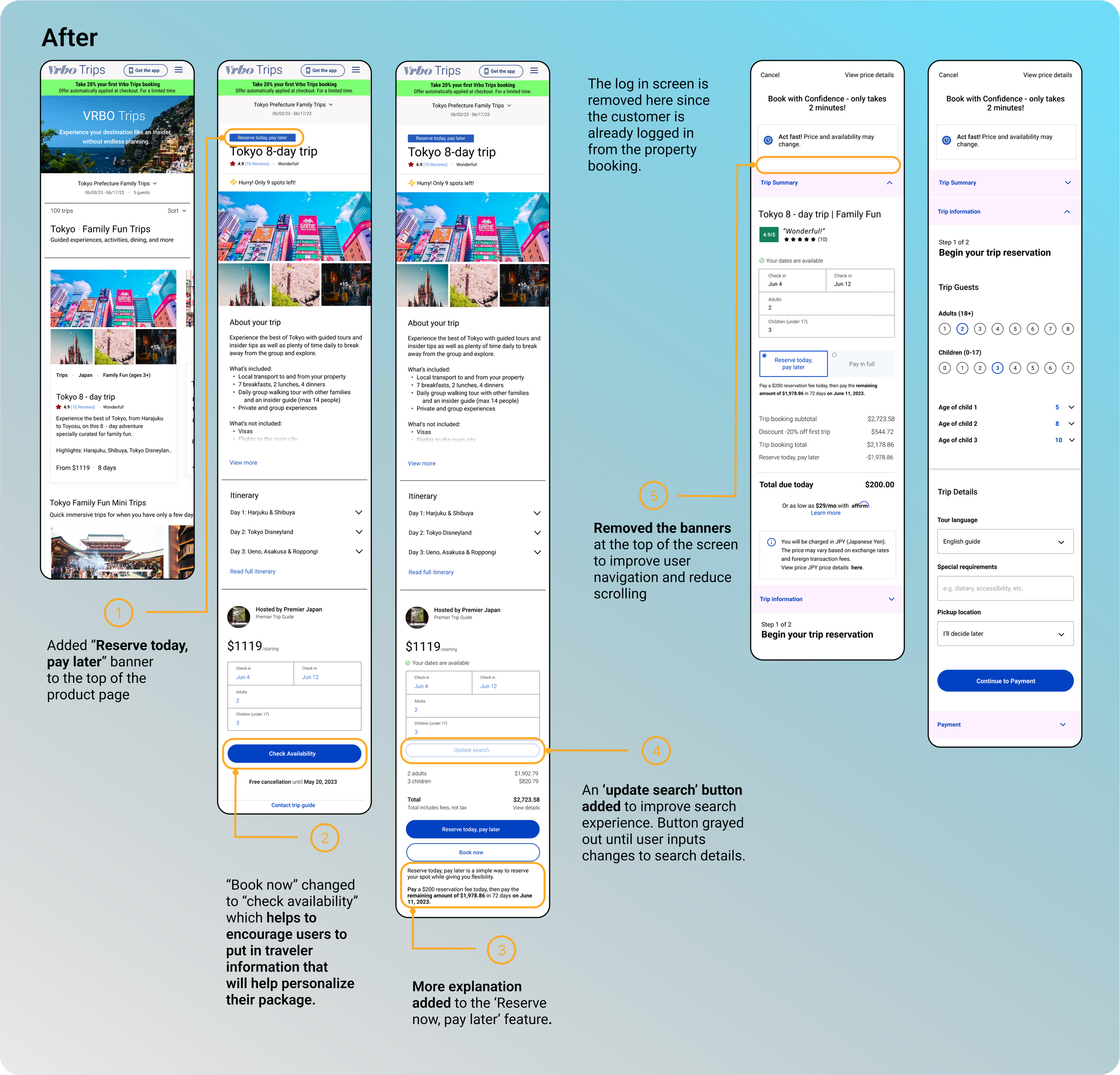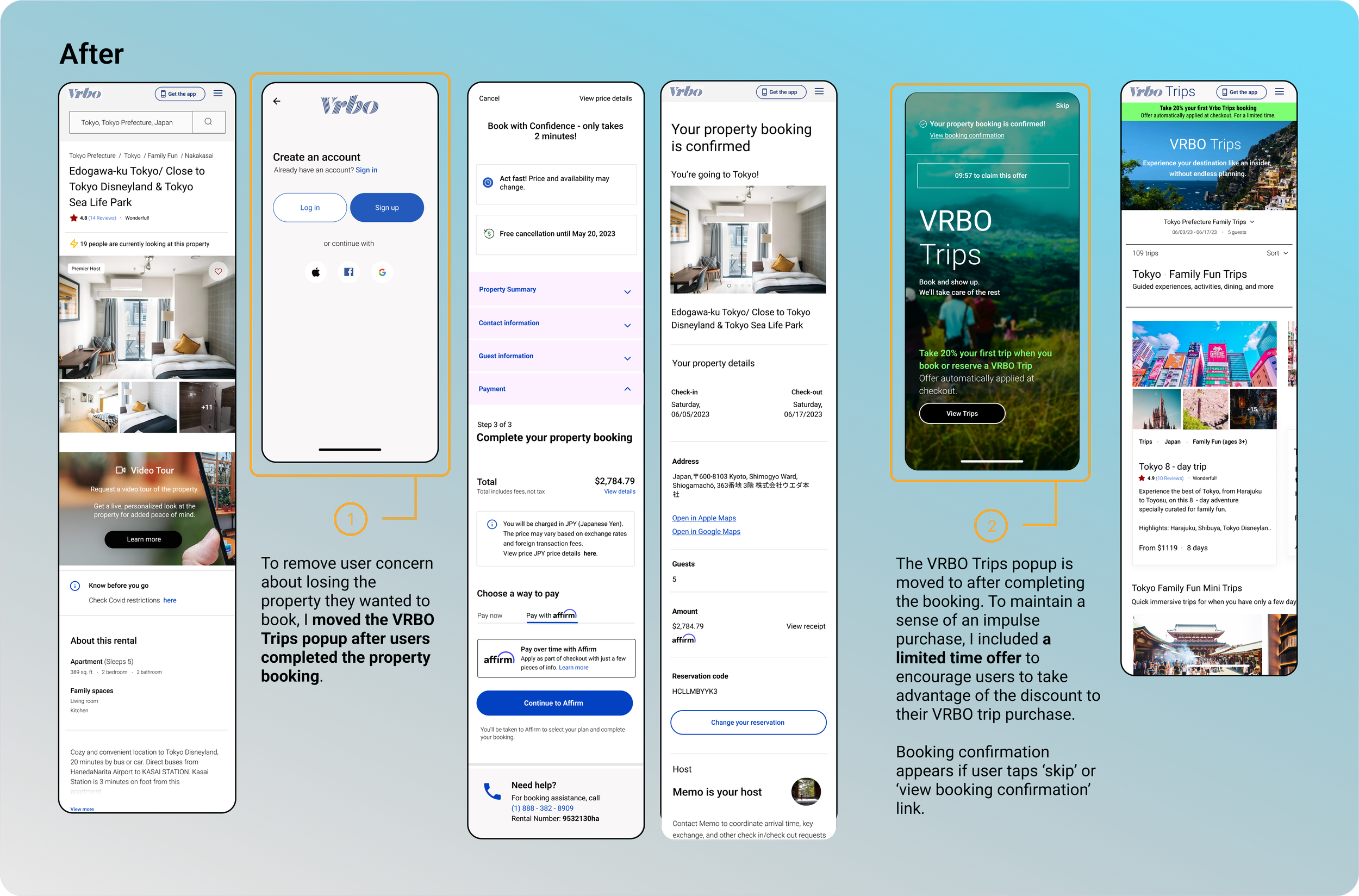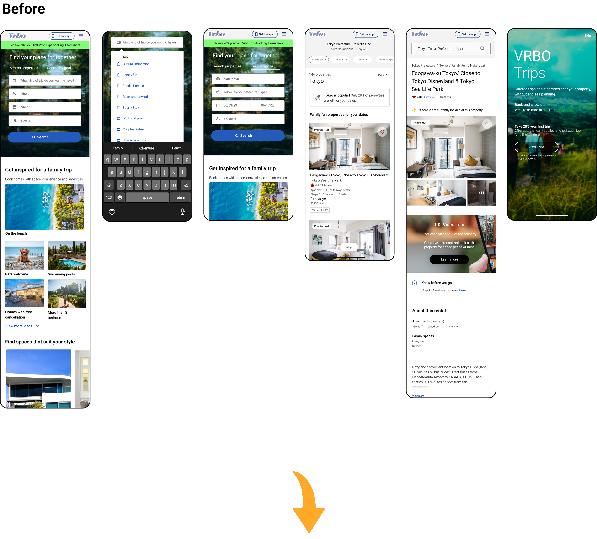 With this in mind, I designed VRBO Trips and introduced them in usability tests for the first time with promising responses. However, the flow of when to present the new VRBO Trips product caused some confusion in usability tests.